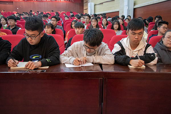 他勉励全体同学要增强学习紧迫感,孜孜不倦地学习,努力掌握科学文化知识和专业技能,努力提高人文素养,在学习中增长知识、锤炼品格,在工作中增长才干、练就本领,以真才实学服务人民,以创新创造贡献国家。(特约通讯员:张成孜)