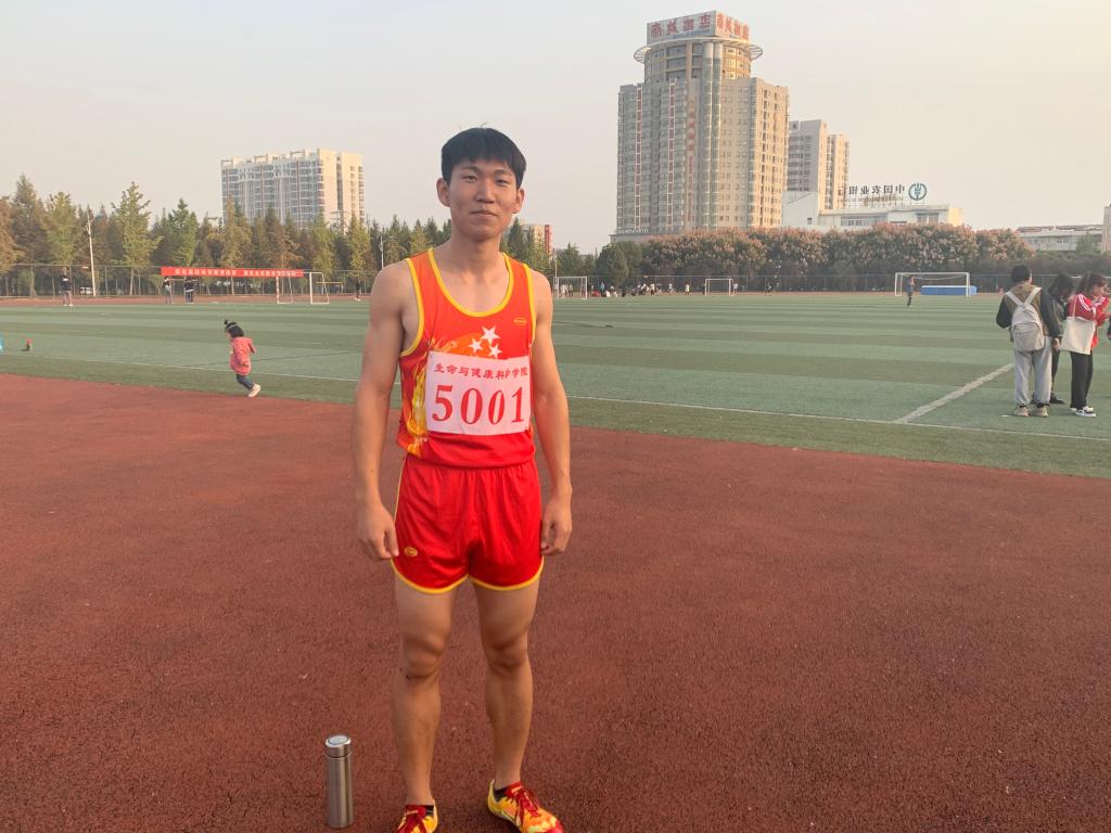 百米外的跑道,运动健儿们一字排开,健美的肌肉是爆发力的展现。一声枪响,迎来了学生甲组男子100米决赛的冠军,他就是生命与健康科学学院的尤宜卿。