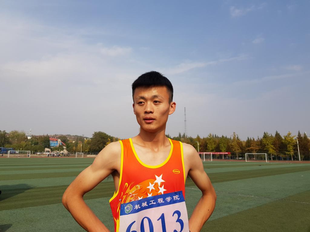 “加油,加油!”,观众不知疲倦的高声呐喊着,终于,男子5000米冠军,一个红色的身影冲过了终点线。他就是我们采访的主角,来自机械工程学院的杨超。