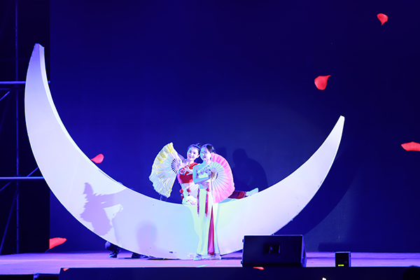 为帮助新同学感受优秀传统文化的魅力,加强两校区的文化传承,演出展示了我校原创思想文化作品、凤阳花鼓主题演出《中都鼓韵》部分精彩的曲目,《火火的花鼓敲起来》、《春风吹绿花鼓乡》、《鼓.新生》等悉数登场,用青春演绎的方式展现和诠释优秀传统文化的丰富内涵,奉上视觉盛宴。新编舞蹈《醉美安科》更是意境深远:悠悠古琴曲,皎皎明月轮,翩翩佳人舞,秋风亦醉人。带有浓郁地方风味的杈拉机《安科处处丹桂香》,表达出安科师生对国逢盛世、家有喜事的欢快愉悦的心境和奋力建功新时代、争创一流应用型高水平大学决心和担当。