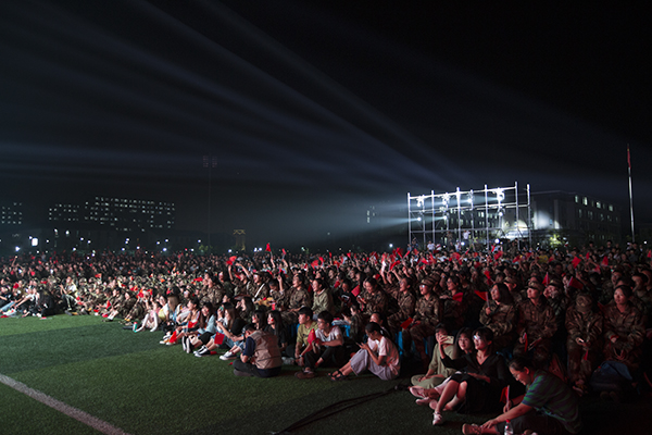 全场师生起身合唱《歌唱祖国》掀起了整场演出的高潮,“五星红旗,迎风飘扬,胜利歌声多么响亮”的激昂旋律久久响彻在两个校区的体育场,回荡在歌者的心中。每场演出现场均有数千人挥舞着国旗,心潮澎湃,激情高歌,尽情释放和表达对祖国母亲的热爱与赞美。