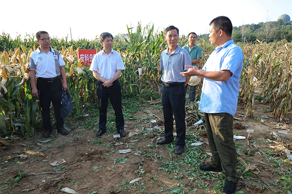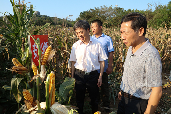 蒋德勤在讲话中充分肯定了团队的玉米育种工作和所取得的成果,并结合学校当前及今后发展对团队提出了具体要求。他指出,一是要在培育新品种上做文章。从当前玉米发展来看,玉米产量的提高有一个逐步的过程,种子要创新,就要在培育新品种上做文章,要结合当地实际,培育、筛选、推广最适合当地的新品种。二是要延长鲜食玉米产业链。当前鲜食玉米越来越受消费者青睐,团队要牢牢抓住机遇,结合当地企业资源和基地资源,进行产业资源融合、人才融合、产品融合,延长产业链、做大做强产业。三是要加大人才培养力度。要利用安徽科技学院的科研优势,加大农业创新力度,充分发挥我校的科研平台优势,加强同当地政府、企业的交流合作,培养优秀专业人才,为科技进步提供人才支撑,把先进的技术推广出去,推进科技创新,提高科技含量,加快成果转化。四是要加强品牌意识。品牌是无形资产,打造玉米品牌的过程就是实现玉米增值的过程。