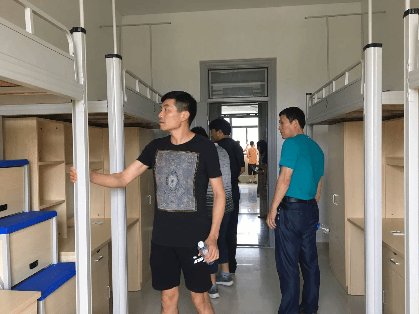 验收小组重点察看了龙湖校区公寓床、柜家具,按照合同、招标文件和投标文件要求,对公寓床配套钢架、立柱、床板、衣柜、书架、书桌、爬梯等规格、材质、工艺质量进行了复核,查看了实物的加工制作质量,以及家具安装的稳定性及牢固度等情况。