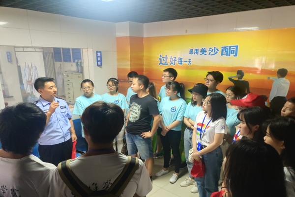 7月12日上午,社会实践团队同学来到了蚌埠市第四人民医院美沙酮药物维持治疗门诊参观,门诊医生首先向同学们介绍了该美沙酮药维点的成立时间、基本建设、工作流程、接受美沙酮药物维持治疗的吸毒人员基本情况、每日门诊治疗情况,并在与这些吸毒人员长期接触的过程中,了解掌握了他们的身体康复状况、就业生活情况等。当日上午,团队成员一行又来到安徽省蚌埠戒毒所进行参观,学习识毒防毒知识,经过严格履行登记手续和查验随身违禁品后,经过三道门禁,大家进入了监管区,进入里面后,绿草荫荫,还有篮球场和健身器材,就像一个花园式小区,这是很多人意想不到的。师生一行依次参观了戒毒学员劳动康复中心、体能训练中心、治疗康复中心、教育疏导中心、生活起居中心。实地了解到戒毒学员日常生活、学习、教育、治疗和工作场所的环境和内容。