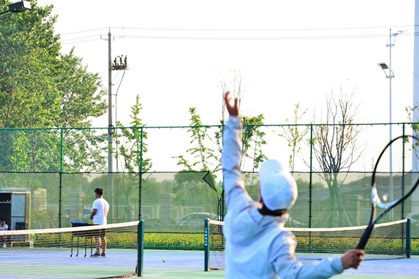 网球场上竞技的气氛热烈,同学们热情高涨得都想要大显身手。强劲有力的上手发球,打出了青春的活力,打出了勇猛的气势。拍起球落,划出完美有力的抛物线,记录着运动的痕迹。全场跑动着接球回击的运动健儿们,尽管汗水已湿透了衣襟,但他们早已沉浸在竞技运动的乐趣之中不知疲惫。