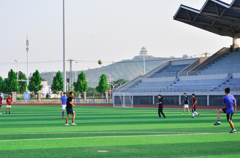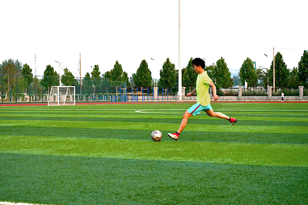 绿茵草地上,充斥着球与脚交替变换紧张激烈的氛围,运动员们激昂的情绪带动着全场的每一个人。微风徐徐,为他们助力,阳光暖暖,为他们鼓劲。高亢的声音,引领着全队的默契配合。脚下敏捷、传球精妙、定睛于球、伸腿用力,一击铿锵有力的射门,给足球场上的运动健将们带去了无尽的欢乐与喜悦。