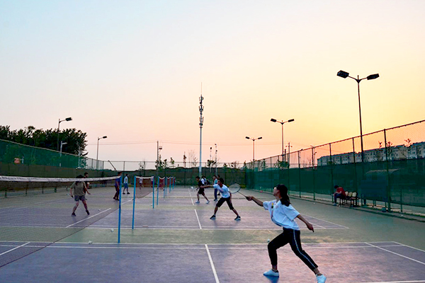 夜幕渐渐降临,但运动健儿们的热情丝毫没有消散。操场、足球场上都留有他们奔跑的足迹,网球场上闪耀着他们的身影,羽毛球场上欢呼声依旧。