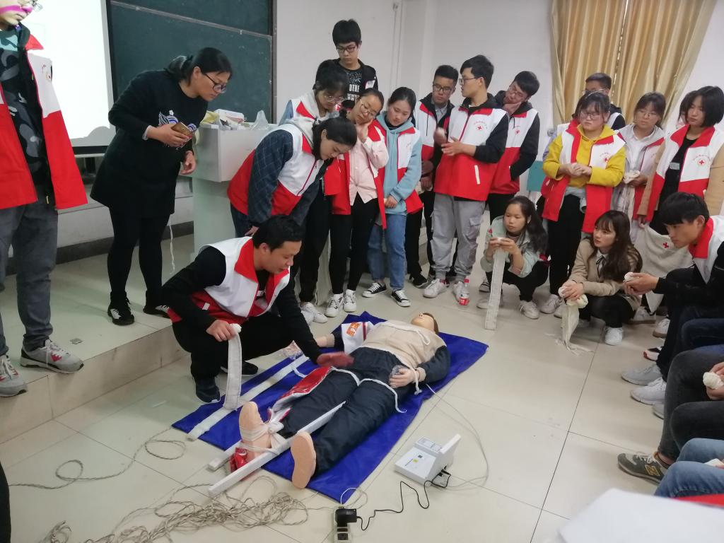 为弘扬“人道、博爱、奉献”的红十字精神,提高我校青年大学生的生命健康安全、应急救护知识教育水平。近日,生命与健康科学学院联合凤阳县红十字会在我校举办了第一期“红十字救护员”应急救护培训班,吸引了50多名学生前来观摩学习。