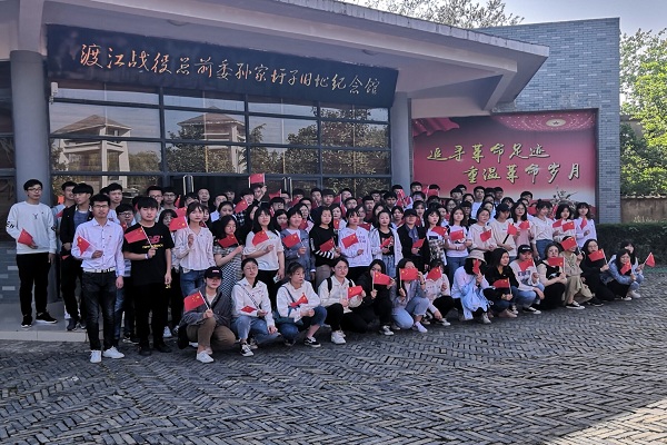 为庆祝中华人民共和国成立70周年、五四运动100周年,加强团员青年党史学习教育,传承红色基因,发扬优良传统,4月17日下午,财经学院组织开展“青春心向党 建功新时代”特别主题团日活动。学院各班级团支部成员、学生组织团员代表共110余人在团委书记薛枫的带领下前往蚌埠市渡江战役总前委旧址开展学习教育活动。