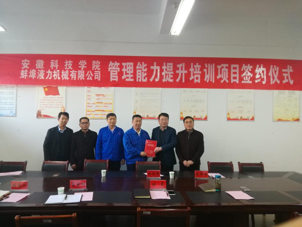 4月1日下午,管理学院与蚌埠液力机械有限公司管理能力提升培训项目签约仪式于学院会议室隆重举行。蚌埠液力机械有限公司党委书记、总经理孙鸿钧、人力资源部部长何家玉,校教务处副处长夏显明及管理学院党政领导出席签约仪式。仪式由管理学院党总支书记姚勇主持。