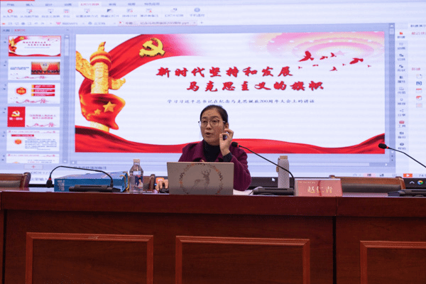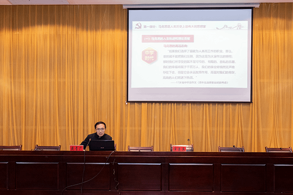报告中,两位老师为青年学生骨干解读了习近平总书记在纪念马克思诞辰200周年大会上的重要讲话精神,分别从马克思是人类历史上最伟大的思想家、马克思给我们留下最有价值最具影响力的精神财富和学习马克思最根本的是要学习和实践马克思主义三方面做了讲解,详细讲述了马克思的人生轨迹和理论贡献,并从科学属性、理论品质、实践意义和时代价值这几个方面一一论证马克思主义理论在当代社会的宝贵价值和巨大影响力。