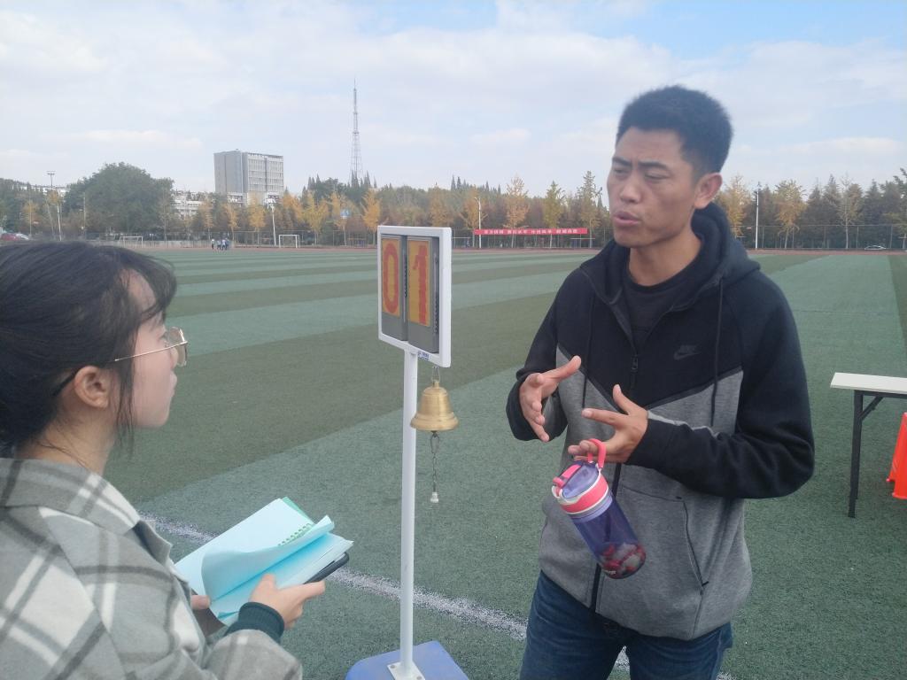 结束了一上午的计时工作后,他感慨道:“校运动会的举办对体育文化有很大的宣传作用,不仅可以增加凝聚力,使学生团结一心,在增进友谊的同时,营造更加活泼的校园气氛。每个运动员不应仅仅代表自己,更要加强协作,拧成一股绳,才能取得最终的胜利。”