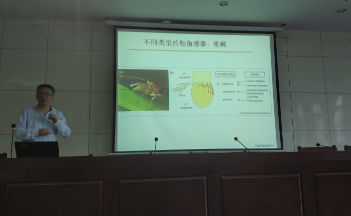 为了落实我校创建硕士学位授予单位三年行动计划,促进校一流培育学科“种植科学与技术”工作的开展,推进国际学术交流与合作,9月19日上午,英国Rothamsted Research(洛桑研究所)的Jing-Jiang Zhou(周警疆)教授应邀在图书馆一楼报告厅作了题为《昆虫与植物互作的分子机制:化学生态学》的学术报告。报告会由农学院院长詹秋文教授主持,相关学院教师和全体研究生以及部门专业本科生聆听了报告会。