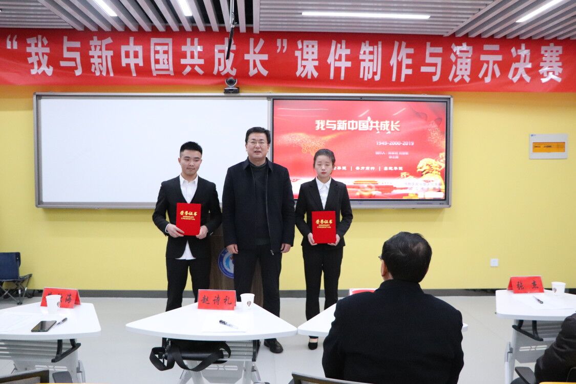 “我与新中国共成长”课件制作与演示比赛是我校深入学习贯彻习近平新时代中国特色社会主义思想、全面贯彻党的十九大和十九届三中、四中全会精神,高举中国特色社会主义伟大旗帜,进一步培育和践行社会主义核心价值观,强化思政育人,厚植爱国情怀,深化新时代学校思想政治理论课实践教育教学的举措之一,是我校为献礼祖国70华诞开展的系列活动之一。
