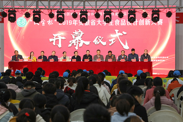 11月30日上午,“凤宝杯”2019年安徽省大学生食品设计创新大赛在我校凤阳校区成功举办。来自26所高校的724人,189个团队同台竞技,共同交流经验,推动我省食品产业科技创新迈上新台阶。安徽省教育厅大赛巡查员、安徽大学吴怀东教授,安徽省普通本科高校食品科学与工程类专业合作委员会主任、本次大赛专家委员会主任杜先锋教授,安徽省农产品加工产业技术体系首席专家钱坤,教育部食品科学与工程类专业教学指导委员会委员魏兆军,安徽农业大学茶与食品科技学院党委书记崔云,安徽凤宝粮油食品(集团)有限公司总经理潘永峰,我校党委副书记韦文联,党委委员、副校长黄远友等出席开幕式。开幕式由我校食品工程学院院长李先保主持。