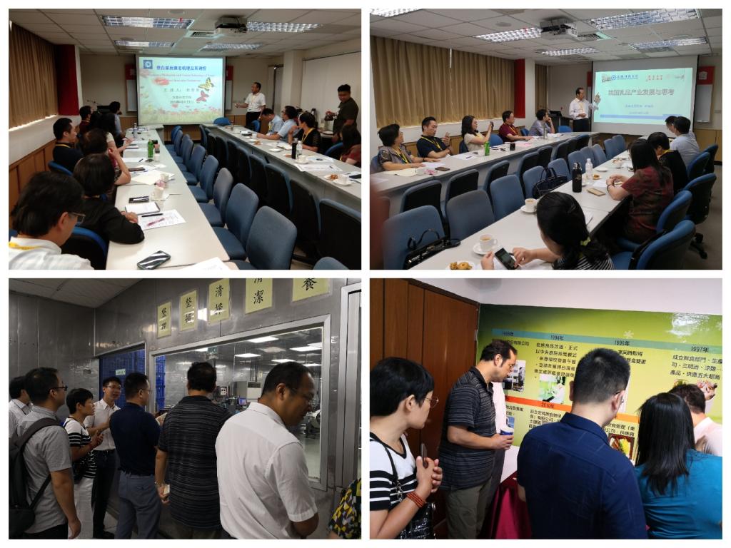 会议首先由台湾大学教授、中国文化大学农学院院长、福建省“闽江学者”讲座教授黄鹏林博士致欢迎词,接着参观中国文化大学博物馆、图书馆和农学院实验室,之后安排有“智慧热泵设计与应用”、“牛樟芝抗氧化降血糖保健效果的探讨”等9场学术报告,第二天安排去宏远国际餐饮集团、统皓食品股份有限公司、维格饼家梦工厂、金格食品、统和农场等5家食品企业参观考察。我校李先保教授做了题为“我国乳品产业发展与思考”,杜传来教授做了题为“茭白采后衰老机理与调控”的学术报告,与会专家认真听取报告,实地参观了涉及中式快餐、特殊人群膳食食谱、中式糕饼、长崎年轮蛋糕和DIY教室以及有机蔬菜生产等食品企业,并就大陆和台湾两地食品学科研究前沿进展与食品产业发展进行了广泛的交流研讨,双方一致认为皖台间食品院校和专家的合作与交流,有利于互助共赢、协同发展,并共同约定皖台食品科学技术研讨会将每年一次在安徽和台湾高校间轮流举办,同时初步商定“第三届皖台食品科学技术研讨会”将于2019年暑期由安徽科技学院食品工程学院主办,届时将邀请更多的皖台两地大学食品学院和食品专家参与。