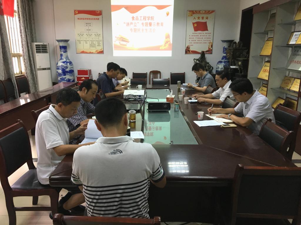 8月18日上午,食品工程学院在学院会议室召开“讲忠诚、严纪律、立政德”专题警示教育专题民主生活会。校党委副书记韦文联出席并全程指导。党委组织部部长钱锐、党委组织部秘书唐仁生陪同指导。食品工程学院党政领导班子成员、党总支委员、党员及教师代表参加会议,会议由食品工程学院党总支书记付光玺主持。