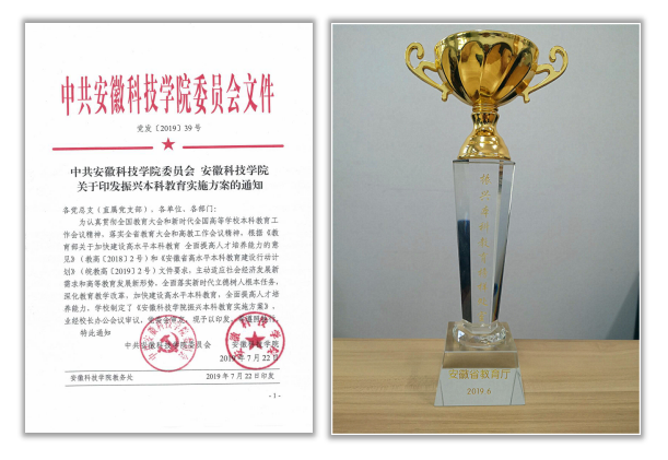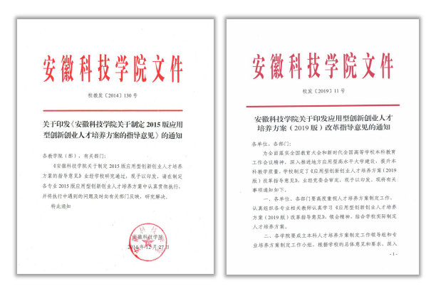 (二)调整专业结构,打造专业集群。优化专业结构,先后获批机器人工程等18个地方经济社会发展急需专业,实施专业动态调整,停招、减招17个专业,撤销1个专业,实际招生专业调整到50个,应用型专业比例超过95%,形成了以新兴工科和优势农科为重点,多学科相互支撑、协调发展的应用型学科专业体系。推进专业集群建设,制定《安徽科技学院专业集群建设方案》,每年投入资金3000万元,建成深度对接健康中国、乡村振兴等国家大战略的大数据等7个彰显学校办学特色和实力的专业集群,培育5个一流专业集群,建成大北农、智慧工厂等产业(未来技术)学院。强化重点专业建设,2015年以来,学校获批国家级复合应用型卓越农林人才教育培养计划改革试点项目,机械设计制造及其自动化专业顺利通过教育部中外合作办学合格评估。物流管理等11个专业获批省级专业综合改革试点项目,无机非金属材料工程等4个专业获批省级专业改造与新专业建设项目,环境工程等3个专业获批省级特色专业,机械工程及其自动化专业获批省级品牌专业;2019年,学校10个专业推荐教育部参评国家级一流专业。2015年建成5个专业标准;2016年在全省全面推广我校专业课程标准建设经验,牵头各联盟高校联合研制34个专业标准。