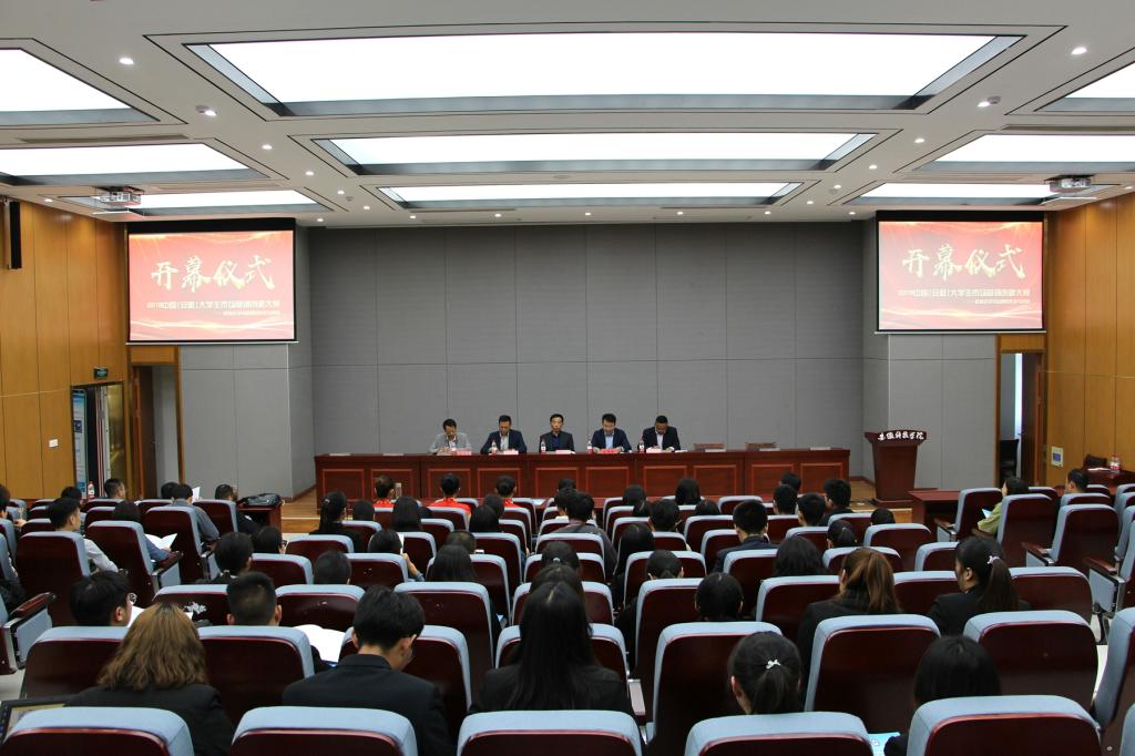 3日下午,大赛在安徽科技学院新校区敏行楼B学术报告厅举行开幕仪式。安徽财经大学新徽商研究中心副主任王唤明主持了开幕式,安徽科技学院管理学院院长赵伟峰致欢迎辞;安徽经济报社社长马顺生代表主办单位讲话;安徽省老字号企业协会胡明朗会长代表评委讲话;安徽科技学院管理学院营销专业学生毕科进代表参赛学生发言;安徽大学市场营销系主任魏华飞代表监委讲话并宣读了监委会名单。大赛的评委组由企业嘉宾和高校教授组成,蚌埠白根柱瓜子总经理周梅、安徽金郎中医药公司董事长张文权、安徽新邦商标事务所总经理刘东海、安徽三联木艺董事长助理章勇、UTC二维码安徽中心总监杜玉林、安徽经济报社社长马顺生、安徽老字号企业协会会长胡明朗、安徽科技学院副教授刘菊、统一集团蚌埠分公司经理王道端、二维码安徽运营公司总经理金胜伟应邀担任本次大赛评委。