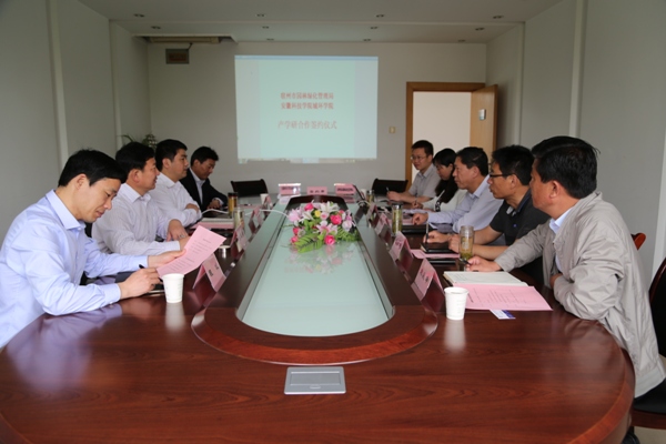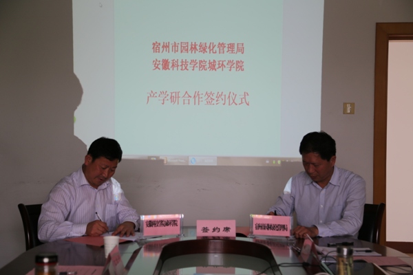 在宿州市园林管理局,汪建飞等看望了校城建与环境学院挂职干部陈鸿,并与宿州市园林绿化管理局局长邱宏瀛等领导班子成员就高校教师地方挂职锻炼、高校人才资源更好为地方经济服务、地方如何为高校人才培养做好平台建设等方面进行了沟通。张远兵、邱宏瀛分别代表城建与环境学院和宿州市园林管理局签订了产学研合作协议。