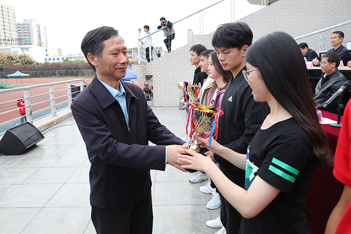 李震为甲组学生团体总分前八名的获奖单位颁奖。黄远友为教工乙组团体总分前八名的获奖单位颁奖。党委委员、宣传(统战)部长卫胜为获“体育道德风尚奖”的单位颁奖。体育运动委员会副主任、党委学工部、学生处处长何永勇为男子甲组团体总分前八名、女子甲组团体总分前八名的获奖单位颁奖。