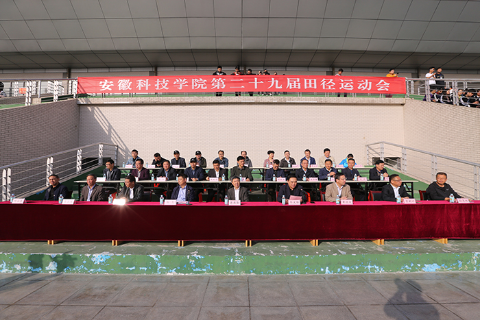 11月1日上午,我校第二十九届田径运动会在凤阳校区西区风雨操场开幕。校党委书记蒋德勤,党委副书记韦文联,党委委员、副校长、校体育运动委员会主任郭亮,党委委员、副校长黄远友等在校校领导出席开幕式。开幕式由韦文联主持。