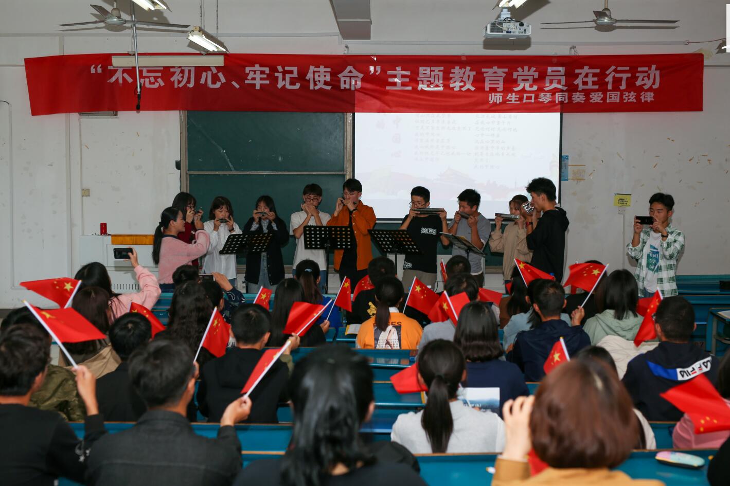 为深入学习贯彻习近平新时代中国特色社会主义思想,纵深推进“不忘初心、牢记使命”主题教育,10月13日下午,“不忘初心、牢记使命”主题教育党员在行动——师生口琴同奏爱国旋律暨安科口琴协会第三期口琴培训班开班典礼在新知楼A102教室举行。人文学院教工党员、口琴协会指导老师田野参加开班典礼并和学生同唱爱国旋律。