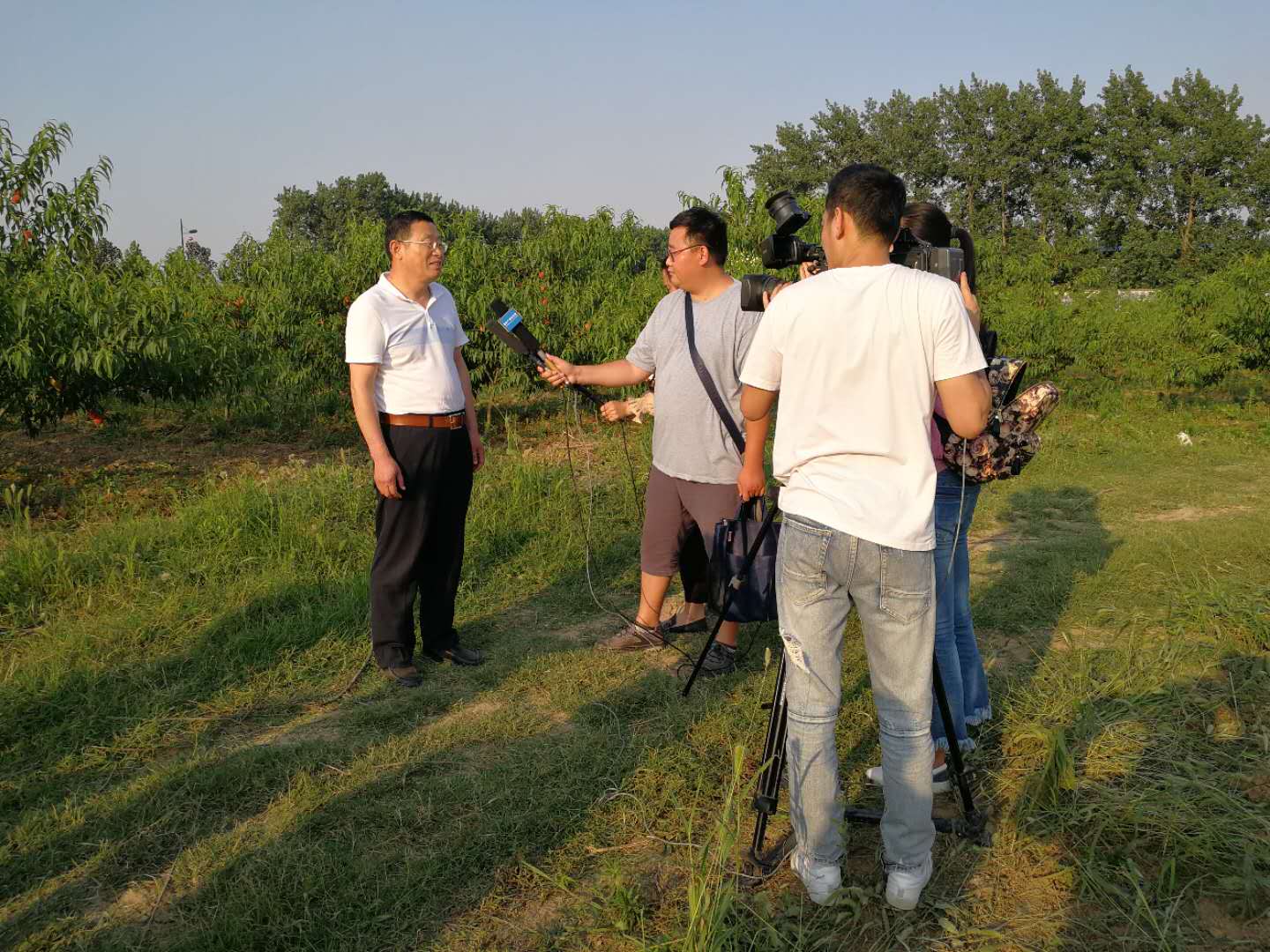 伟侠果蔬种植专业合作社董事长王伟同时接受采访,他详细介绍了基地建设以来合作社发展现状,开展的主要工作以及未来发展规划,向媒体展示了合作社种植的新型水果品种,引导各路媒体参观了合作社的桃树和猕猴桃种植园。