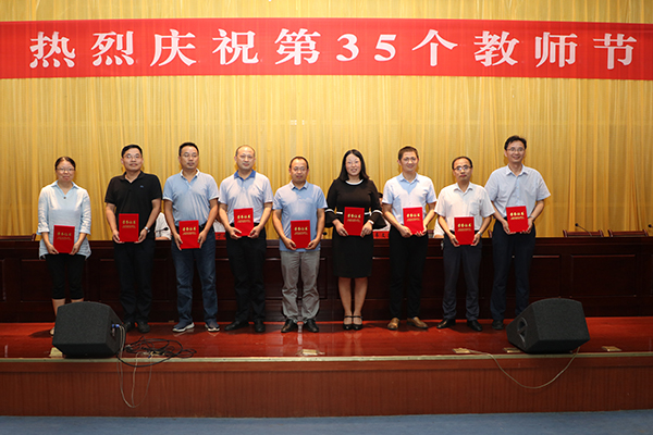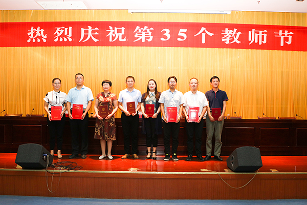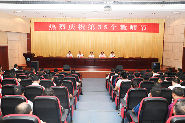 9月10日下午,我校在凤阳校区新图书馆二楼报告厅召开2019年教师节庆祝表彰大会。校党委书记蒋德勤,党委副书记韦文联,党委委员、纪委书记丁和生,党委委员、副校长郭亮,党委委员、副校长黄远友出席大会。大会由韦文联主持。