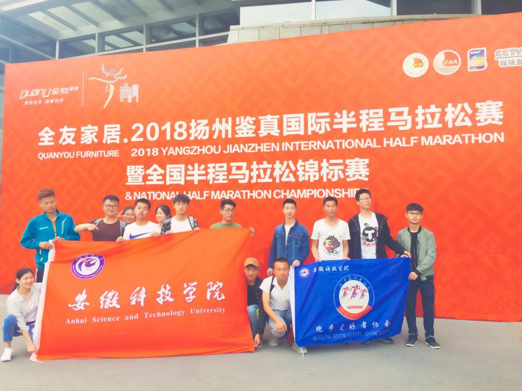 4月22日,由中央电视台体育频道、江苏省体育局、中国田径协会、扬州市人民政府主办,江苏省体育竞赛管理中心、江苏省体育产业指导中心、扬州市体育局承办的2018年“扬州鉴真国际半程马拉松赛”在扬州举行,我校大学生跑步协会15名青年学子在校团委秘书张成孜带队下赴扬州参赛。