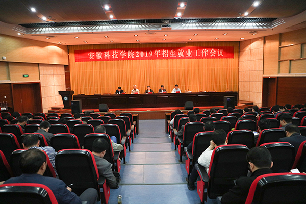 4月19日下午,学校在会议中心第二报告厅召开2019年招生就业工作会议,深入贯彻落实《国务院关于深化考试招生制度改革的实施意见》和2019届全国普通高校毕业生就业创业工作会议精神,分析研判我校招生就业工作面临的新形势,研究部署未来两年招生就业工作。校党委书记蒋德勤,党委副书记、校长李震,党委委员、纪委书记丁和生,党委委员、副校长郭亮,党委委员、副校长黄远友出席会议。会议由郭亮主持。
