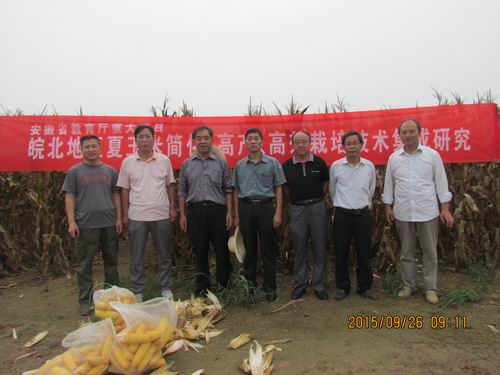 专家一致认为,项目工作思路清晰,技术路线正确,品种选用得当,关键技术适用;特别是将品种、控释肥施用技术、高产高效优化模式、全程机械化技术集成,并在项目区得到广泛推广应用。建议将品种、农技农艺融合技术、高产优化模式、控释肥应用技术等进一步集成熟化,尽快在皖北夏玉米种植地区应用推广。