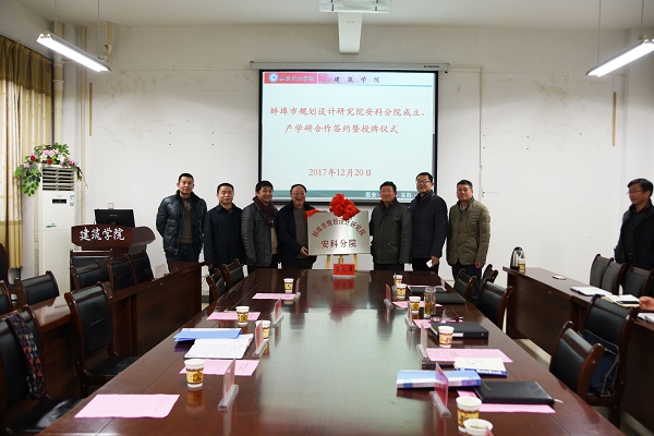 最后,刘锋为“蚌埠市规划设计研究院安科分院”授牌,汪建飞为“安徽科技学院产学研合作基地”授牌。