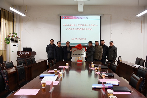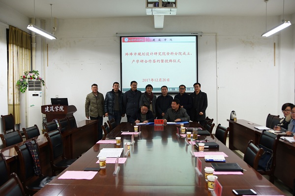 12月20日下午,建筑学院与蚌埠市规划设计研究院战略性框架协议签订仪式在建筑学院会议室举行。校党委委员、副校长汪建飞,科研处副处长鲍方印,教务处副处长夏显明,建筑学院院长张远兵、党总支书记傅友褔;蚌埠市城乡规划局副局长、蚌埠市规划设计研究院院长刘锋以及局总规划师汪云东和相关人员参加仪式。仪式由鲍方印主持。