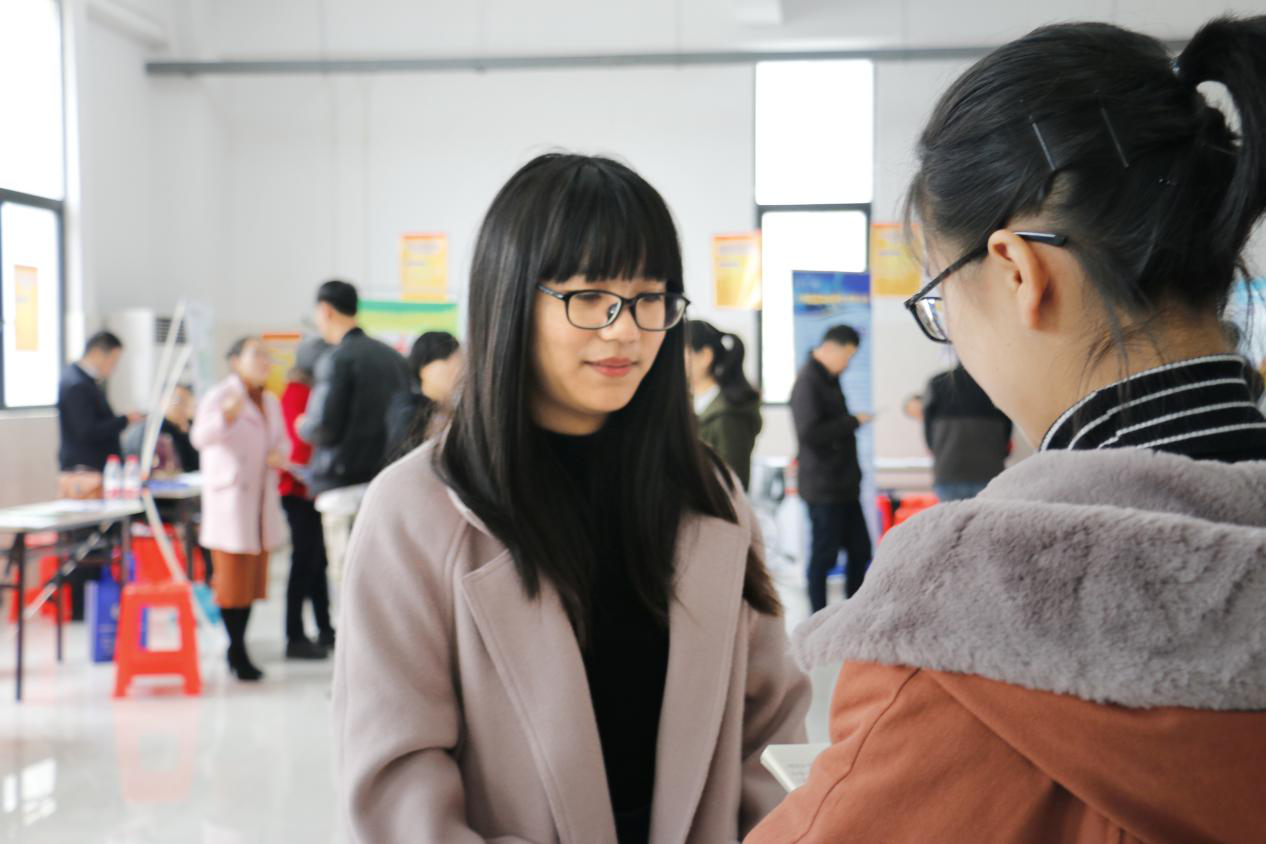人头攒动的招聘会现场,每个人都有着自己的需求和目标,他们带着疑惑和期盼来到此次招聘会,积极主动地与企业代表交流以便获知更多的信息,来自外国语学院英语专业的应届毕业生朱雅丽便是如此。