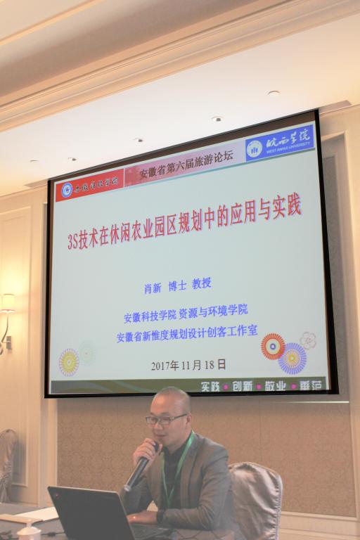 会上,肖新作了题为《3S技术在休闲农业园区规划中的应用与实践》的专题报告,报告分享了我校省级规划设计创客工作室团队在3S技术在休闲农业规划中应用的研究成果和优秀规划实践案例,并诚挚邀请与会专家、学者参加我校在12月12日至13日承办的安徽省第五届GIS学术研讨会暨安徽省第九届大学生GIS技能大赛筹备会。
