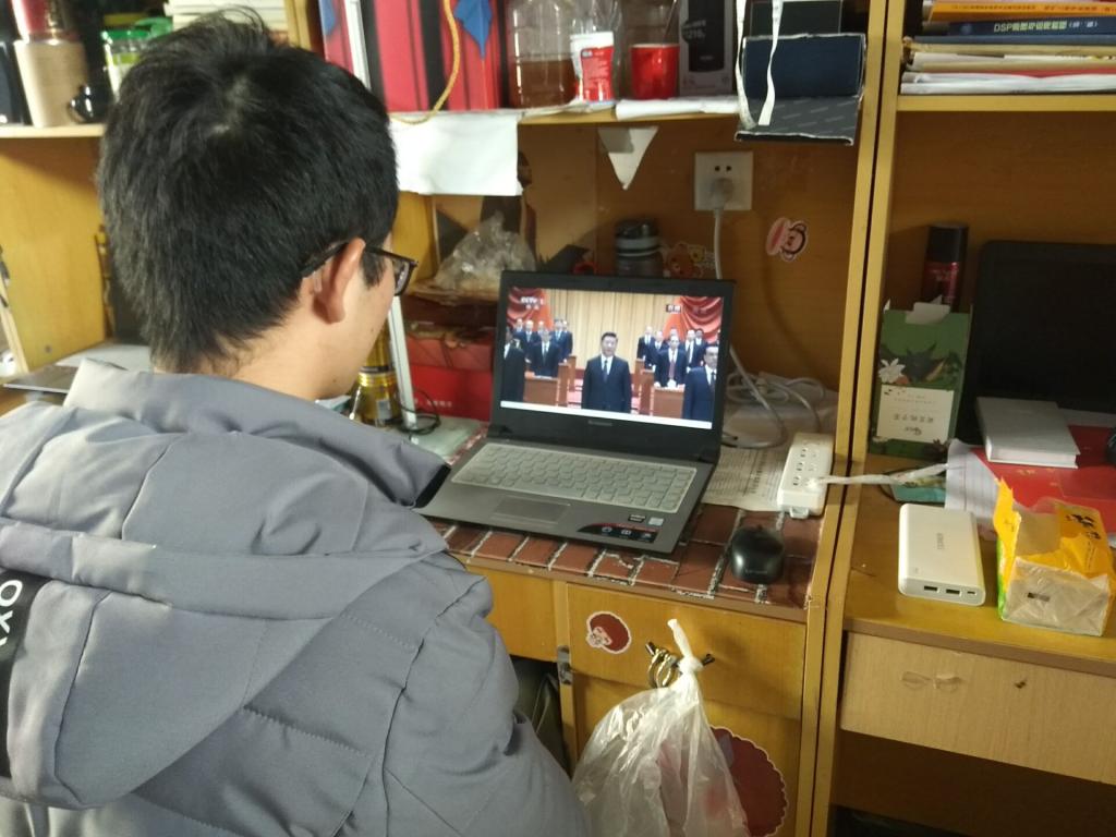 据悉,我校实习在外的毕业生在工厂、在公司、在地铁上……也及时收看了大会盛况。(摄影:余良 祝磊 刘晓艺等)