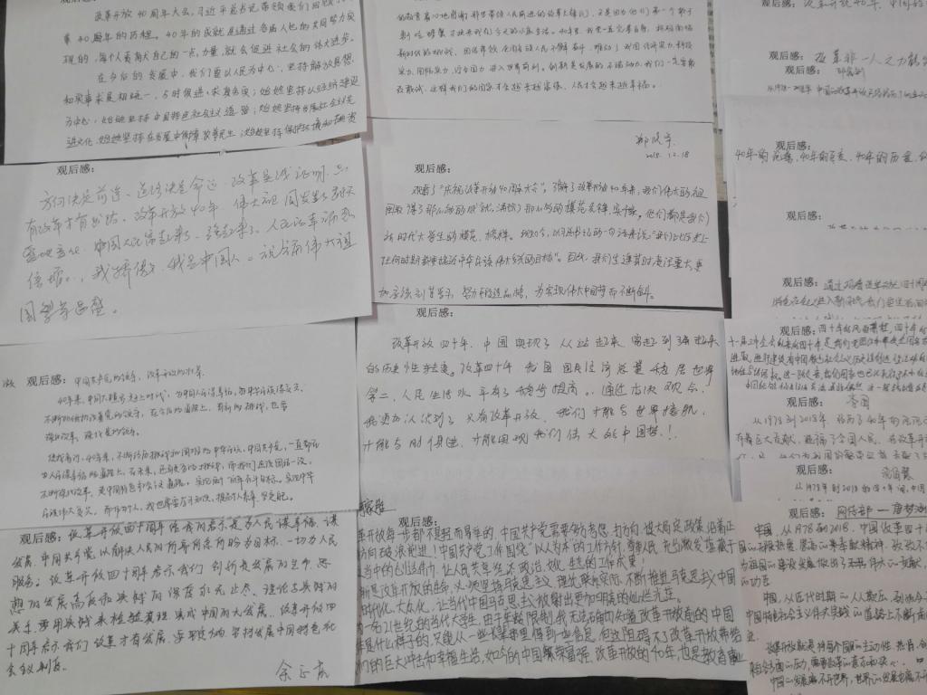 人文学院法学172班学生王慧如说,观看习近平总书记在庆祝改革开放40周年大会上的讲话后,我印象最深刻的一句话就是:建成社会主义现代化强国,实现中华民族伟大复兴,是一场接力跑,我们要一棒接着一棒跑下去,每一代人都要为下一代人跑出一个好成绩。作为当代青年大学生,我们的历史责任与使命也相应有所不同。我们应深感使命光荣、责任重大,应做到明志、自立、自强,在享受改革开放给自己带来便利的同时,为祖国接下来的伟大目标而努力奋斗。