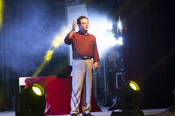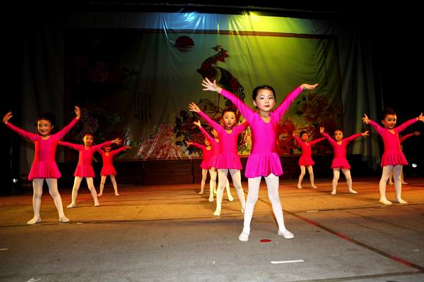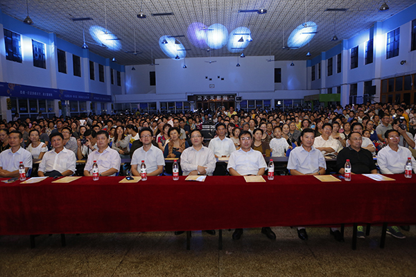 璀璨的灯光下,投射在礼堂墙壁上的蓝星星、五彩圆不时交替移动。校幼儿园可爱的小朋友们表演的舞蹈《不如跳舞》,如一阵无邪的风,顷刻间把大家带进了童真的世界。孩子们如同雀跃的天使,快乐的舞步更是带给大家暖暖的温馨;武术舞狮表演里,两只俏皮的小狮子萌翻全场,而棍棒、大刀的全新演绎更是精彩绝伦;模特队的《秋之韵》,古典与西洋风完美结合。一边是帽子、丝巾、蓝白相间的连体衣服,诙谐成一股豪迈洒脱风。而另一边却是小桥流水、江南一片烟雨中,娇柔的红衣美人手持油纸伞,醉了这一方的朦胧;而优美的黄梅戏《十五的月亮为谁圆》更是用声音愉悦了耳朵,也让种种思念漫上心头……
