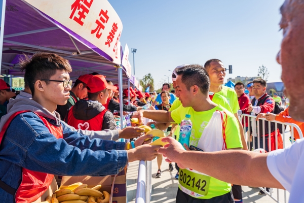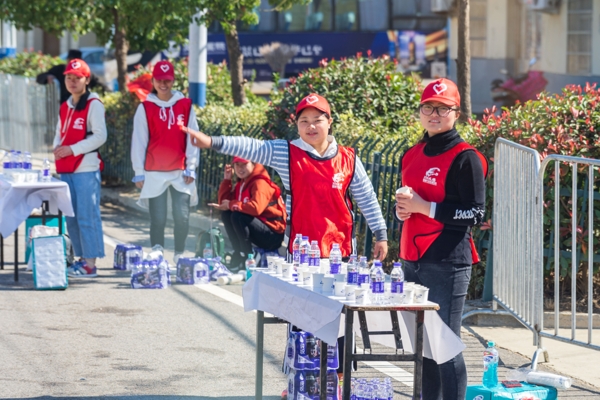 凌晨5时,气温6摄氏度,27辆大巴车满载着我校1569名大学生志愿者驶出校门,奔赴各自工作地。志愿者们精神饱满、志气昂扬,身着统一的红色凤马志愿服务服,在6点前准时完成了各组志愿服务布点。不论是全程赛事、半程赛事还是欢乐跑赛事,不论是在起点、终点还是沿途各节点,那一抹动人心弦的志愿红为赛事增添了独特的风景,令人赏心悦目。他们奋战在起终点引导、能量补给、文明宣传等29个岗位,哪里有需要,哪里就有他们的身影。