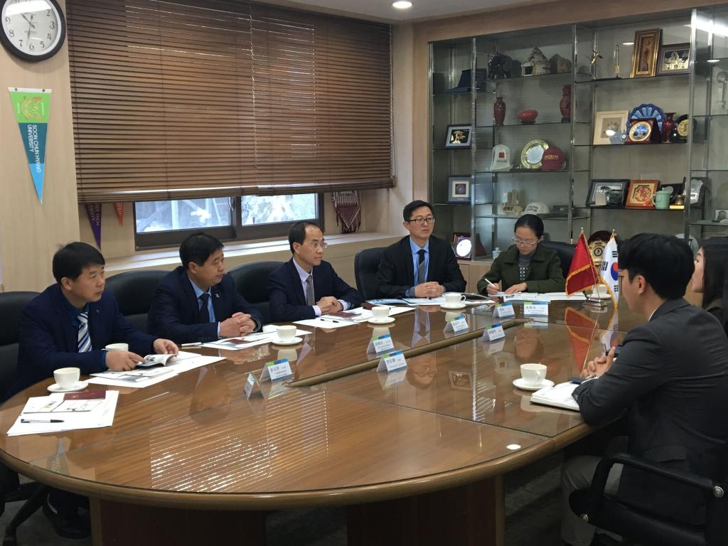 李悳薰校长在接见安徽科技学院代表团时指出,两校合作基础良好,过去八年合作成果丰硕,希望双方在更大范围、更多领域、更高层次开展教育合作与学术交流,搭建良好的沟通交流平台,实现优势互补、共同发展。陈君华表示安徽科技学院高度注重国际化办学工作,将不断深化和加强学术交流与合作,努力推进教师与科研人员的互访与交流,促进两校共同进步。