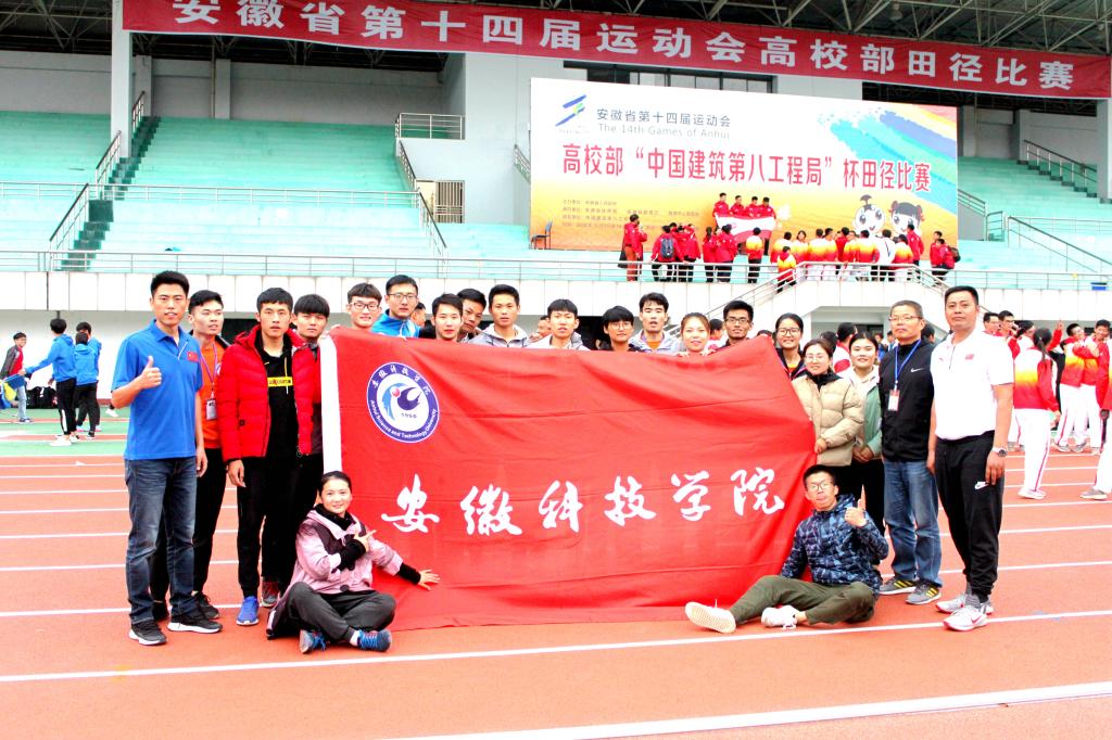 安徽省第十四届运动会高校部田径比赛于10月9日至14日在安徽财经大学举行,本次比赛共有82所高校的1358名运动员参加,分为甲、乙、丙三组。我校田径队由领队孙志双和教练员陶运三、闫松带领19名运动员参加了甲组比赛。安徽省运动会是由安徽省人民政府主办的省内最高级别赛事,每四年一届,我校领导高度重视,要求体育教学部积极备战。体育部精心组织教练员、运动员在坚持日常训练的基础上,利用暑假封闭集训,为比赛做了充分的准备。
