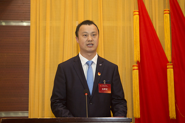 大会主席团团长、校团委书记候选人黄立义致开幕词