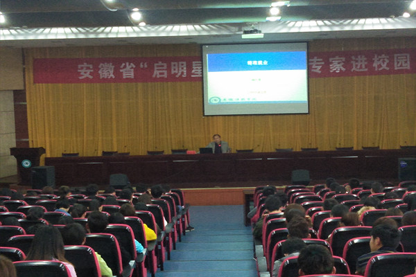 3月14日,由安徽省人力资源和社会保障厅主办,各高校承办的“启明星”就业指导专家团报告会在我校新图书馆第二报告厅举行,安徽省“启明星”就业指导专家团成员、校创新创业教育学院院长杨仕勇为2018届毕业生及部分大三学生作就业创业辅导报告。
