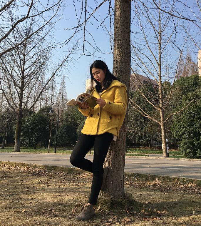 她喜欢看书,图书馆总是能看到她的身影。采访地点之所以选择了老图书馆前,就是因为她正在图书馆准备考研。随着考研日子越来越临近,她每天都在图书馆里从白天备战到深夜,日复一日。当她从老图书馆信步向我们走来时,才让我们明白什么是“从来才女果谁俦,错玉偏珠万斛舟”。在采访中,我们了解到她大一大二的时候特别喜欢去图书馆看书,类型不限,广泛涉猎。大三因为要准备考研,所以阅读的时间被大大缩减,但平时学习累了的时候她就会阅读一些自己喜欢的书籍来放松自己。在她眼中,大学是进入社会的一个过渡阶段,不能只读与本专业相关的书,要试着涉猎各个领域的知识,或许暂无回报,但今后总会用到。也许正是当初这些知识的积累,才成就了现在的她。
