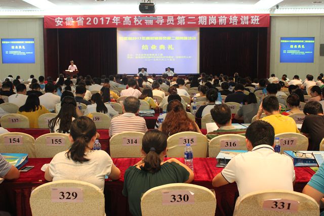 7月3日至8日和8月20-25日,安徽省2017年高校辅导员第一期和第二期岗前培训在教育部高校辅导员培训和研修基地(安徽师范大学)举行。我校2016年引进的辅导员吴汉、杨小晗、贾方敏、姜毅、邓茜和2017年新进辅导员宋兵兵、刘国祥、宫大卫、申立泉、王亚平、方辛、谭博文、王天云、薛路莎、王培培、曹珊珊等共计16人分两批参加培训活动并顺利结业。
