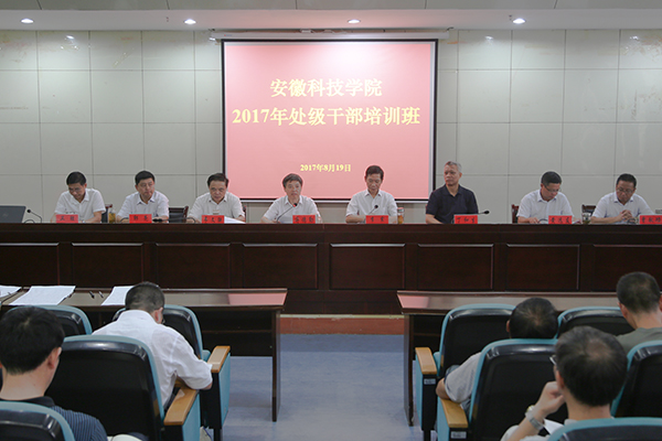 8月19日上午,我校处级干部深入学习贯彻习近平总书记视察安徽重要讲话和党的十八届六中全会精神专题培训班在新图书馆一楼报告厅开班。校党委书记蒋德勤,党委副书记、校长李震,党委副书记韦文联,党委委员、纪委书记丁和生,党委委员、副校长郭亮,党委委员、副校长黄远友,党委委员、宣传部长卫胜,党委委员、党委(校长)办公室主任曾献功出席开班仪式,全体处级干部参加会议。开班仪式由李震主持。