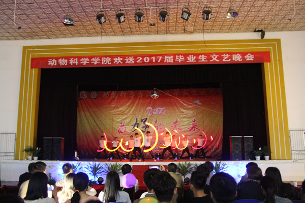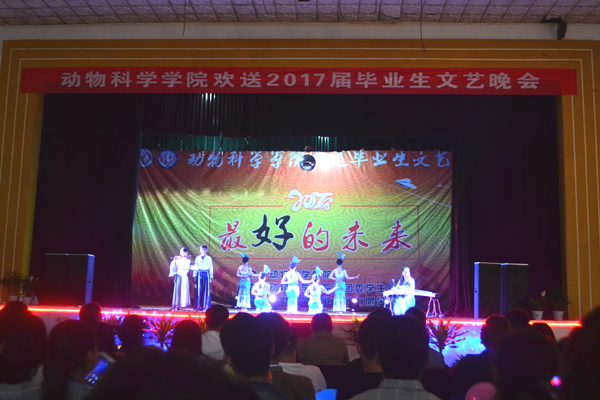 6月5日晚,动物科学学院“最好的未来”欢送2017届毕业生文艺晚会在校第一活动中心隆重举行。宣传部、学生处、团委等单位负责人,安徽强英鸭业集团养殖事业部养殖专员贾德刚,安徽强英鸭业集团养殖事业部人力资源总监朱燕辉,动物科学学院党政领导与千余名学子欢聚一堂,共赏晚会,夜话别离。