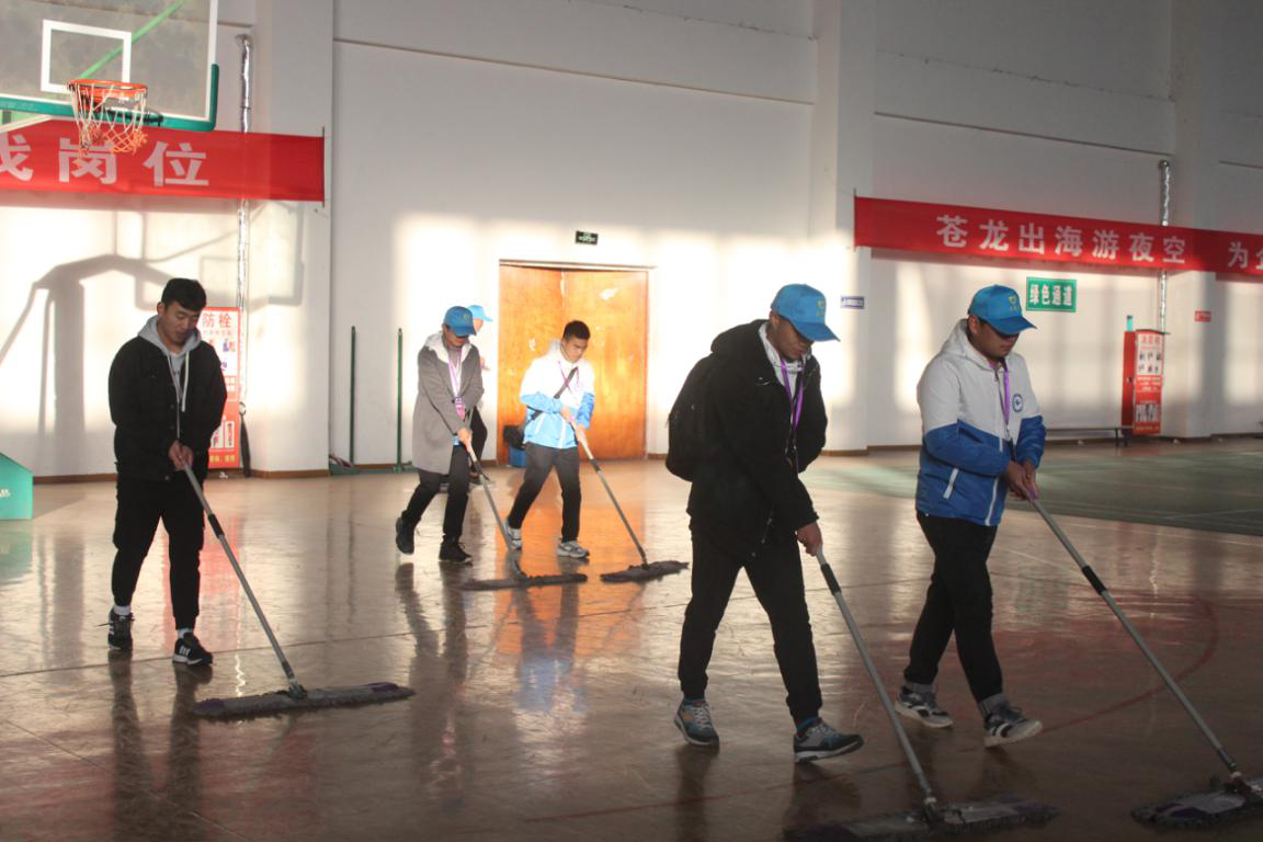 11月29日7:40志愿者进行产品展示、报道等地点的最后清洁
