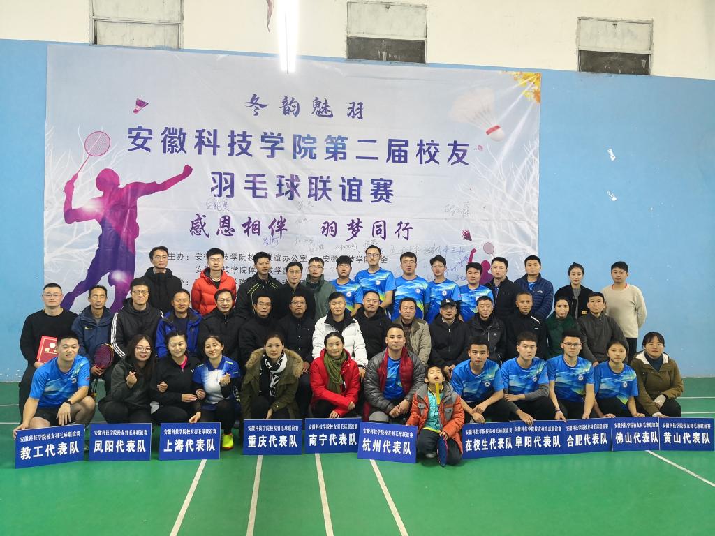 11月30日至12月1日,在学校的大力支持下,安徽科技学院校友俱乐部承办了安徽科技学院第二届校友羽毛球联谊赛,来自全国各地的毕业生校友返回母校,与曾经的老师畅叙情谊,与在校学子切磋球技,分享人生经验,同时为母校建设和发展开展捐赠活动。在本届的单项比赛中,在校生杨高峰同学夺得男子单打冠军。